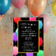 Shhh... ¡Es una sorpresa! Disfrute de un ambiente festivo con esta Invitación Sorpresa de Cumpleaños adornada con globos de colores y confeti sobre un fondo negro con acentos dorados. Todos los campos se pueden personalizar para decir exactamente lo que se desea.