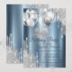 Un moderno, chic y glamuroso con goteo de purpurina plateada y globos sobre un fondo metálico azul.