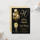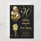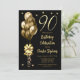 Elegantes globos purpurinas de tono dorado con gran arco y correas y estrellas de acento "90" invitación a la fiesta de cumpleaños número 90.