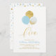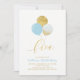 Invitación Globos de oro y azul claro Cinco cumpleaños