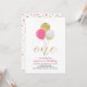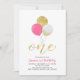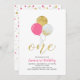 Invitación Globos de oro y rosado caliente Primera fiesta de
