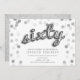 Letras de Globo de Plata "sesenta" Plantilla de Invitación de Cumpleaños 60 con Confeti Brillante.