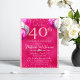 Esta invitación a una fiesta personalizado tiene un fabuloso tema de 40 años sobre un fondo de diseño de Relieve metalizado rosado caliente. Los globos purpurinas plateados y rosados se colocan a ambos lados del año 40, que se imprime en un patrón purpurina rosa claro, seguido de la información del evento y su ubicación. Debajo del nombre del invitado de honor se imprime una glamorosa banda de diamantes. Confetti acentúa las partes superior e inferior. Es perfecto para un cumpleaños, aniversario u otra ocasión especial.