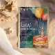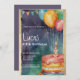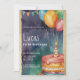 Invitación globos de torta morada azul naranja 5 cumpleaños