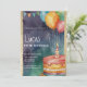 Esta encantadora, moderna y naranja, globo de torta morada, azul y dorada invitación a la fiesta de cumpleaños 5 es perfecta para tu pequeña estrella. Cuenta con un diseño de ilustracion acuático pintado a mano. Los elementos incluyen globos naranja, rosa y verde azulado sobre una acuarela morada, verde menta y fondo dorado. Todos los diseños están impresos.