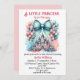 una princesa pequeña está en camino. un castillo con globos voladores atados con una proa para una ducha de bebé.