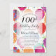 Invitación Globos modernos rosados morados 100 cumpleaños
