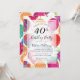 Invite a sus fiestas de 40 años a que se alojen con estilo en esta moderna carta llana con un fondo de globos con coloridos patrones fractales en rosa, rojo, morado y oro. Los detalles de su fiesta a personalizar están en tipografía negra sobre un overlay blanco opaco. La parte trasera de la tarjeta tiene un patrón de globos coloridos sobre blanco. Diseñado por ©Tim Coffey y Susan Coffey.