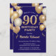 Invitación de cumpleaños a los Purpurinas de oro y azul de la marina de cumpleaños 90. Para una mayor personalización, haga clic en el botón "Personalizar" y utilice nuestra herramienta de diseño para modificar esta plantilla.