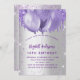 Para un elegante cumpleaños número 18 (o cualquier edad). Un elegante fondo falso plateado. Decorada con purpurinas y globos falsos de color violeta y lavanda. Personalice y agregue un nombre, edad y detalles del fiesta. El nombre se escribe con un guión de estilo con letras a mano