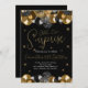 Invitación Globos Sorpresa Cumpleaños Purpurina de Oro Negro