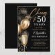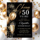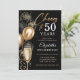 Invitación Gloria a 50 años Globos negros y dorados