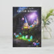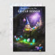 Gnome en la invitación a cenar en Pascua de Noche y Huevos. Para el brunch o el desayuno. Gnome sostiene una canasta de huevos de Pascua por la noche cerca de su casa. Personalice esta plantilla con texto en la parte delantera y trasera de la tarjeta. Editarlo para realizar más cambios.