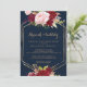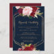 Este brunch geométrico rojo dorado y la burbuja de la ducha de novia es perfecto para una moderna ducha de boda. El diseño artístico del marsala incluye acuarelas, rosas verdes, rosas, borgoñas y ondulados, decorados con una vegetación cuidada alrededor de marcos geométricos de oro en un elegante y radiante ramo de flores.