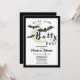 Celebrate the spooky fall season in style with this charming Halloween baby shower invitation featuring a crescent moon, playful bats, framed with a background. Whether you're hosting a baby shower for a little pumpkin or your favorite little ghoul, this unique design is perfect for fall celebrations. Part of the We're Going Batty baby shower collection by Porch and Gable Design with matching decor and paper goods available.