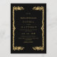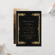 Modern stylish dark wedding invitation black with gold dust on with a gold ink pour effect (the gold is a digital effect, not real foil!) and modern calligraphy. Classy and elegant, simple and modern invitation.