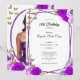 This elegant purple and gold 18th birthday debut invitation has purple roses and gold butterflies with a personalizable template to create your own message. Add your photo on the back to personalize the image. The invitation template is customizable in the listing editor and is also available as a digital download that's printable after you personalize it. This is a modern, blingy design that's still traditional enough for an elegant milestone birthday.