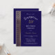 La moderna chevron color azul marino y oro estampó sorpresa a la invitación a la cena de cumpleaños número 30.