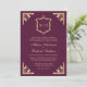 Invitación Gold Crest Monogram QR Code Plum Purple Wedding