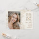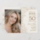 Sorpresa de la crema de oro floral 50 cumpleaños con tu foto en la parte delantera de la tarjeta. Diseño elegante y moderno con detalles botánicos de dibujos y tipografía. Sencilla carta de invitación a la moda, perfecta para una elegante celebración de cumpleaños femenina. Se puede personalizar a cualquier edad. Invitaciones Zazzle impresas o una plantilla imprimible digital de descarga instantánea.