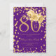 Invitación Gold Floral y Confetti 80th Birthday Party Purple