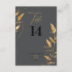This unique table number card is part of a sophisticated 40th anniversary collection. The design features a black and gold color palette, highlighted with delicate foliage line art. Bold typography balances beautifully with graceful script details, creating a sophisticated and romantic look. Perfect for celebrating '40 years of love' in timeless style. Search ID1169 to see other products in this design set.
