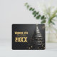 Celebrate the New Year in style with this sleek and modern design. Featuring a minimalist black Christmas tree adorned with small, elegant gold ornaments and shimmering lights, it exudes contemporary sophistication. Paired with a dark background and subtle metallic textures, this design sets the tone for an upscale and chic celebration.