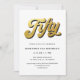 This fun, retro-inspired 50th birthday party invitation features a classic white background with faux gold retro script and simple typography for the invitation text. The script on the front says "Fifty". Customize this design further by adding a photo or additional text to the back simply by using the "design tool".