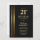 Invitación Gold Striped Black 21st Birthday Party