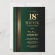 Invite your friends and loved ones to your birthday celebration with this modern gold striped black and green 18th birthday party invitation. The customizable text area in this invitation template allows you to include all the necessary details for your special birthday celebration, including the date, time, venue, and RSVP information. A variety of paper types and corner styles are available for your unique invitations, along with the option to download if you prefer a digital format.
