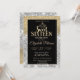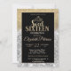 Gold glitter tiara on silver and gold glitter bokeh ombre Sweet 16 birthday party invitation.