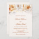This wedding invitation exudes timeless elegance with its soft, romantic design. The top is adorned with delicate watercolor-style florals in warm tones of ivory, gold and white, creating a gentle and graceful frame. The layout is clean and balanced, with a harmonious mix of classic sans serif fonts and an elegant classic calligraphic script used for the bride and groom's names, adding a personal and sophisticated touch. The overall aesthetic is refined and romantic—perfect for a formal or garden-themed celebration.