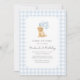 Invite a amigos y familiares a celebrar el cumpleaños de su pequeña con esta elegante invitación de los clientes de gingham dorada.