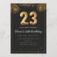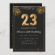 Adorable 23th birthday party invitation in a black and gold balloons design with golden tropical palm leaves. Customize with your party details and mail out to family and friends inviting them to celebrate the 23th birthday with style!