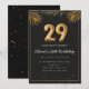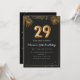 Adorable 29th birthday party invitation in a black and gold balloons design with golden tropical palm leaves. Customize with your party details and mail out to family and friends inviting them to celebrate the 29th birthday with style!