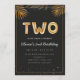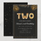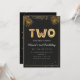 Adorable 2nd birthday party invitation in a black and gold balloons design with golden tropical palm leaves. Customize with your party details and mail out to family and friends inviting them to celebrate the 2nd birthday with style!
