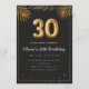 Adorable 30th birthday party invitation in a black and gold balloons design with golden tropical palm leaves. Customize with your party details and mail out to family and friends inviting them to celebrate the 30th birthday with style!