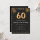 Adorable 60th birthday party invitation in a black and gold balloons design with golden tropical palm leaves. Customize with your party details and mail out to family and friends inviting them to celebrate the 60th birthday with style!