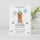 Invitación de cumpleaños de goldendoodle Pawty Dog Puppy. ¡Una invitación perfecta para los amantes del perro! Invitación de cumpleaños de perro Goldendoodle con gorra fiesta azul y globos verdes y azules. Consulte la colección Lets Pawty para ver otras razas de perros y elementos coincidentes.