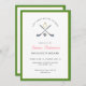 'Last swing before the ring' Simple and elegant green and white Golfing Bachelorette weekend with itinerary featuring hand painted watercolor golf clubs and ball.