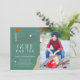 This retro modern kid's birthday golf party/par-tee photo invitation features a red flag and golf balls with a fairway and bunker in a golf course . The reverse side features a dark green background with a golf ball and tee pattern. Personalize it for your needs. You can find matching products at my store.