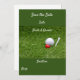 Pelota de golf y tee con amor en hierba verde guarda la fecha