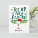 Disfrute de unas vacaciones divertidas con esta tarjeta de Navidades con temática de golf. Con el juego de palabras "Let's Par-Tee", esta tarjeta es perfecta para los golfistas, los aficionados al deporte y todo aquel que ame un giro descarado de las vacaciones. Luminoso, alegre y lleno de espíritu Navidad, es ideal para enviar cálidos deseos a amigos, familia o colegas amantes del golf.