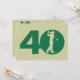 Puedes personalizar todo el texto de esta 40ª invitación de fiesta de cumpleaños temática al golf. Puede cambiar el texto y el número en la parte delantera y usarlo para un 50, 60, 70 u otro cumpleaños. El diseño tiene una silueta de un golfista balanceando un club hecho para parecer el cero en 40 en la parte delantera. Verde, caqui o bronceado.