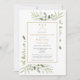 An elegant celebration of life remembrance invitation featuring greenery, golf clubs and ball, and a photo of the loved one on the reverse. Designed by Thisisnotme©