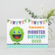 Invitaciones del fiesta del golpe del cumpleaños del monstruo para los muchachos. El cumpleaños personalizado personalizado lindo invita con un feliz lindo, sonriendo, verde, monstruo mullido, amistoso, pequeño; empavesado colorido y lunares azules. Un diseño moderno colorido con una mirada retra del carnaval del vintage maravilloso. Este la diversión, enrrollada, fiesta del monstruo del muchacho invita para los niños/los fiestas de los niños se adorna/se imprime en ambos lados/dos lados/impresión echada a un lado doble. Puede ser utilizado para cualquier cumpleaños de la edad para el fiesta de un niño: - 1r, 2do, 3ro, 4to, 5to, 6to, 7mo, 8vo, 9no, 10mo, 11mo. El texto del golpe del cumpleaños del monstruo es fijo pero el resto del texto es personalisable/personalizable. Si usted necesita alguna ayuda que modifica su producto para requisitos particulares me entra en contacto con por favor a través de mi tienda y me placeré ayudar. OBSERVE POR FAVOR: - Todas las invitaciones en Zazzle tienen imágenes impresas del plano.