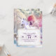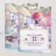 Invitación Goma arcoiris montando unicornio en el espacio.
