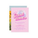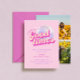 Esta invitación a una fiesta de beachillerato rosa incluye una bola de disco y una tipografía retro, lo que le da un ambiente divertido y lúdico. La fachada de la invitación está decorada con un fondo rosa y una brillante bola de disco, lo que da un toque de alegría a una celebración llena de energía. La tipografía retro se suma a la temática, dando a la invitación un toque nostálgico de moda. En el reverso de la invitación, se muestran fotos de la novia y sus amigos, lo que añade un toque personal al diseño.