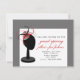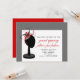 Una invitación de la tienda de ropa/de la gran inauguración del boutique que ofrece un ilustracion de un soporte del gorra negro que lleva un fascinator rojo, negro, y gris. Frontera gris. El lado opuesto es rojo. Personalice el texto con los detalles de su ocasión.