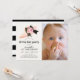 Esta moda y moderna invitación a la fotografía fiesta de primer cumpleaños gorra derby tiene un gran gorra rosa con rosas y un gran arco negro sobre un fondo blanco crema. El reverso presenta un fondo blanco con rayas negras. Personalízalo para tus necesidades. Puedes encontrar más productos de conejito en mi tienda.